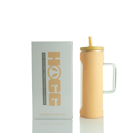 20oz GLASS SKINNY W/ SLEEVE CASE - TAN (25 UNITS)
