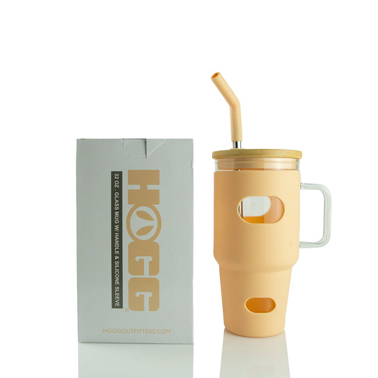 32oz GLASS MUG W/ HANDLE & SLEEVE CASE - TAN (20 UNITS)