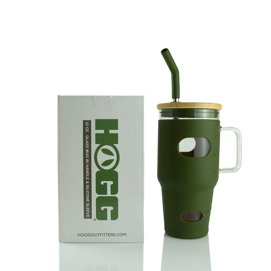 32oz GLASS MUG W/ HANDLE & SLEEVE CASE - OLIVE (20 UNITS)