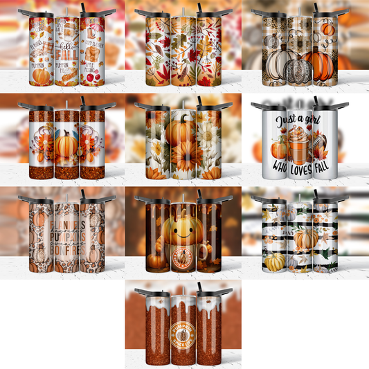 ASSORTED READY TO PRESS SUBLIMATION PRINTS FOR 20oz STRAIGHT SKINNY TUMBLERS (10 PACK) - FALL