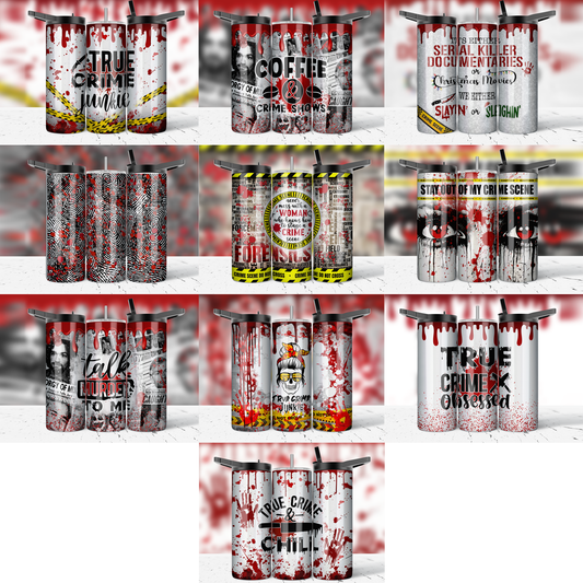 ASSORTED READY TO PRESS SUBLIMATION PRINTS FOR 20oz STRAIGHT SKINNY TUMBLERS (10 PACK) - TRUE CRIME