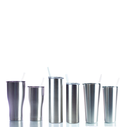 Our bundles feature a variety of size options, including 12-ounce, 16-ounce, 20-ounce, 30-ounce, and 40-ounce tumblers. These durable, polymer-coated sublimation blanks are perfect for crafting stunning custom drinkware.